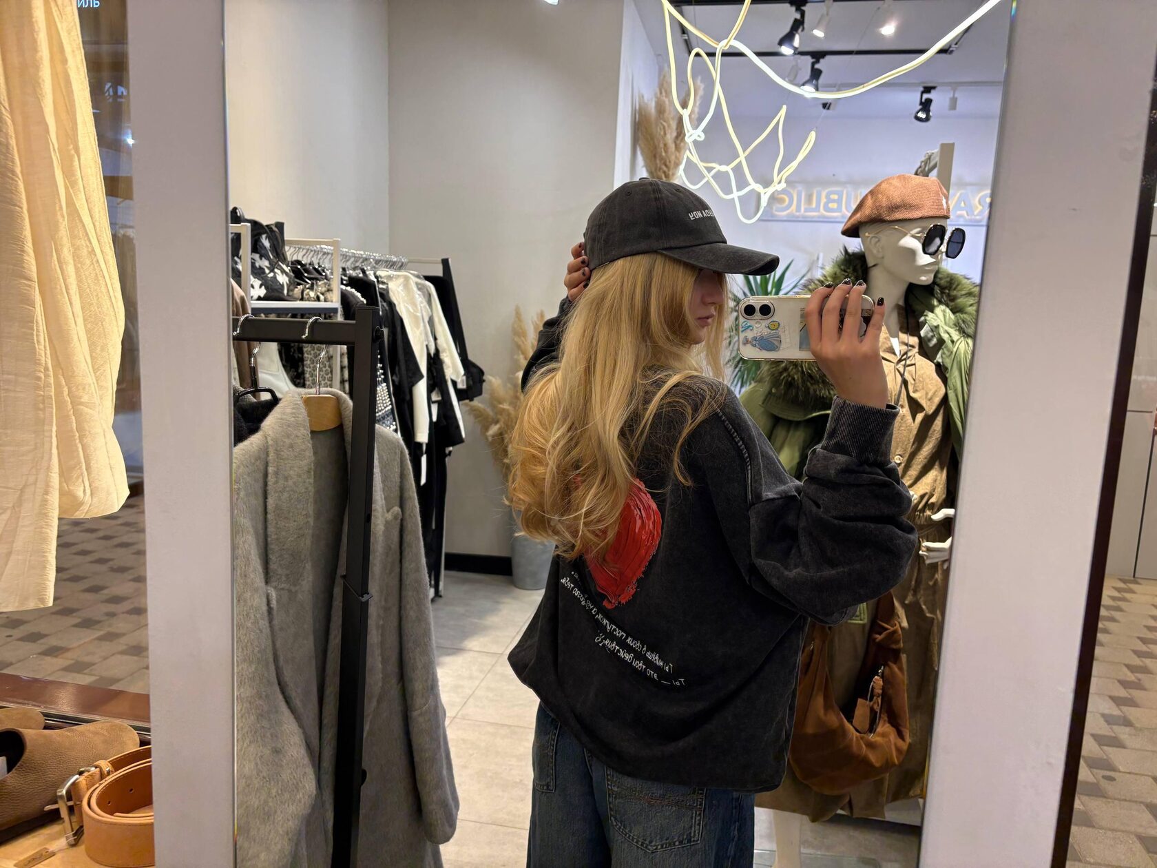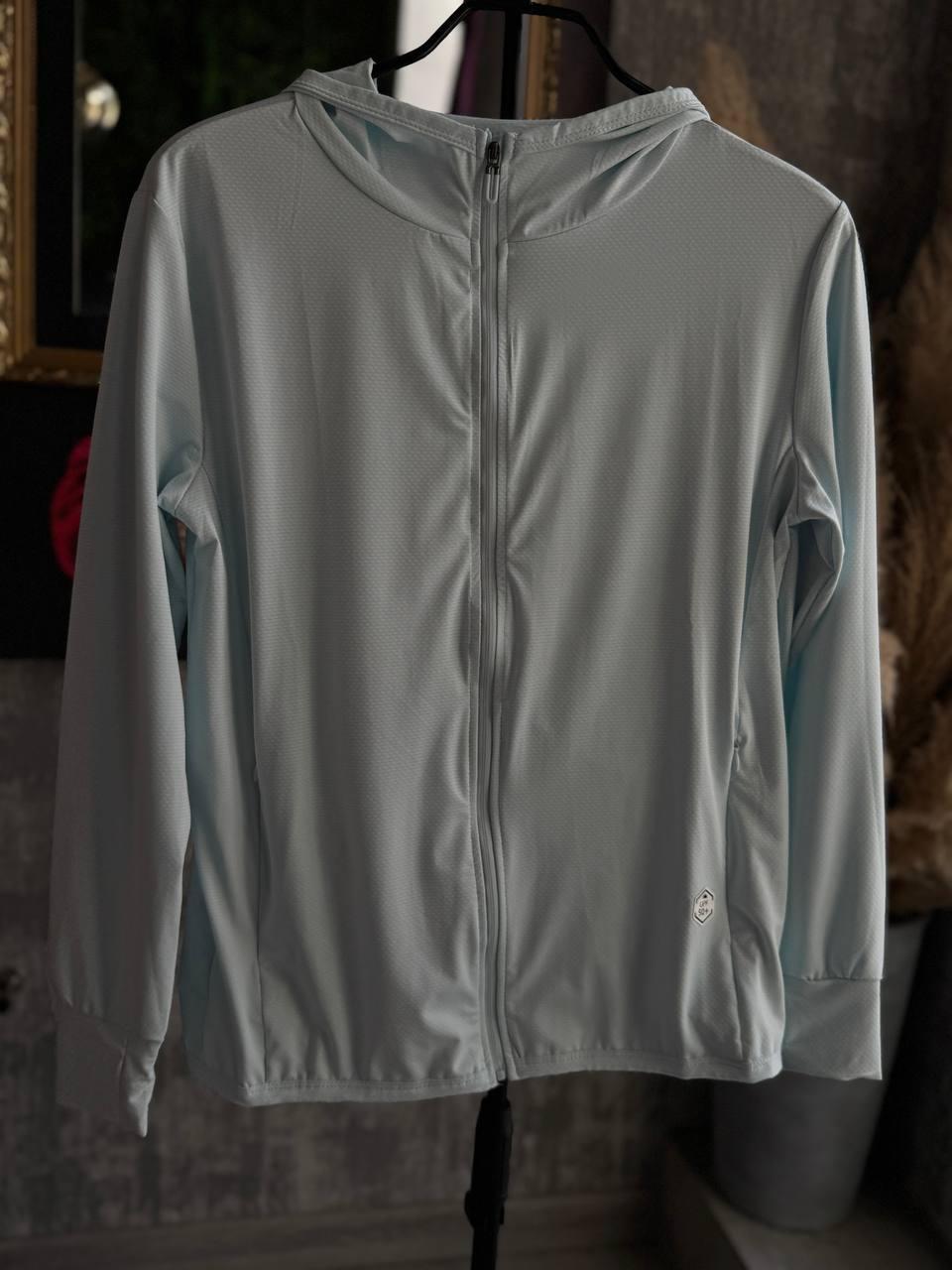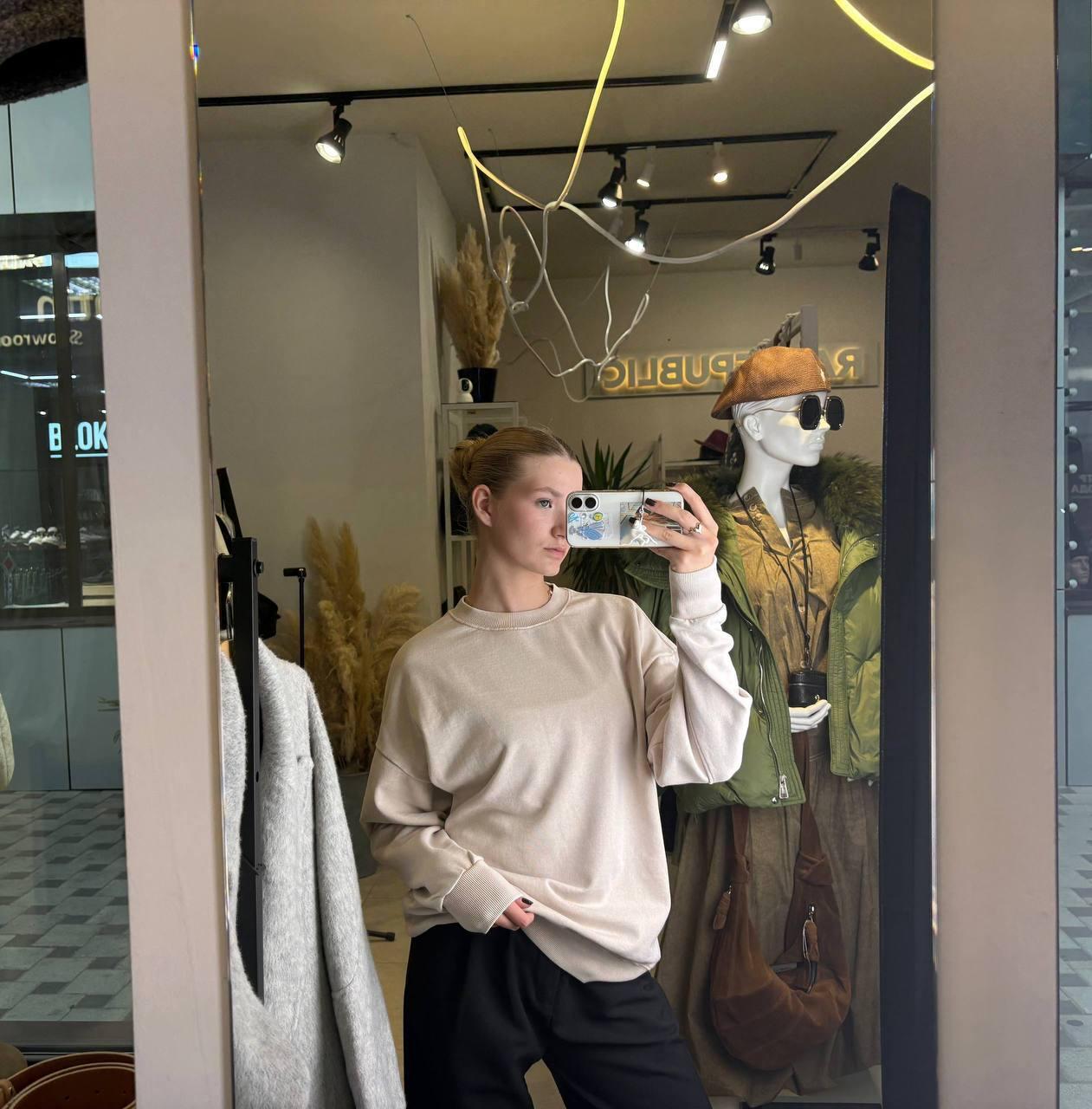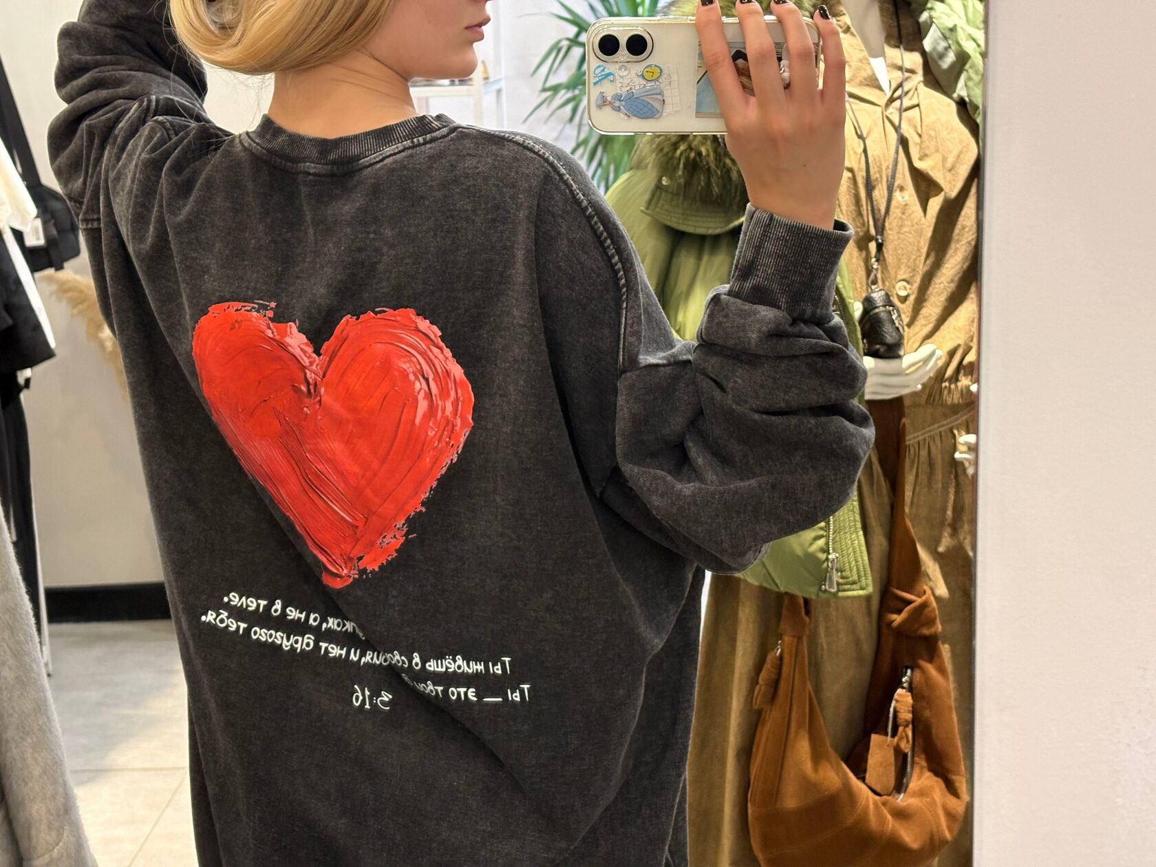 футболка выполнена из жатой ткани. Совсем не требует глажки. Идеальна к телу. Эту коллекцию носят мужчины и женщины. Можно пробовать на М размер, если красиво ее застилизовать с жакетом или завязать узлом, так как маленьких размеров их нет.
